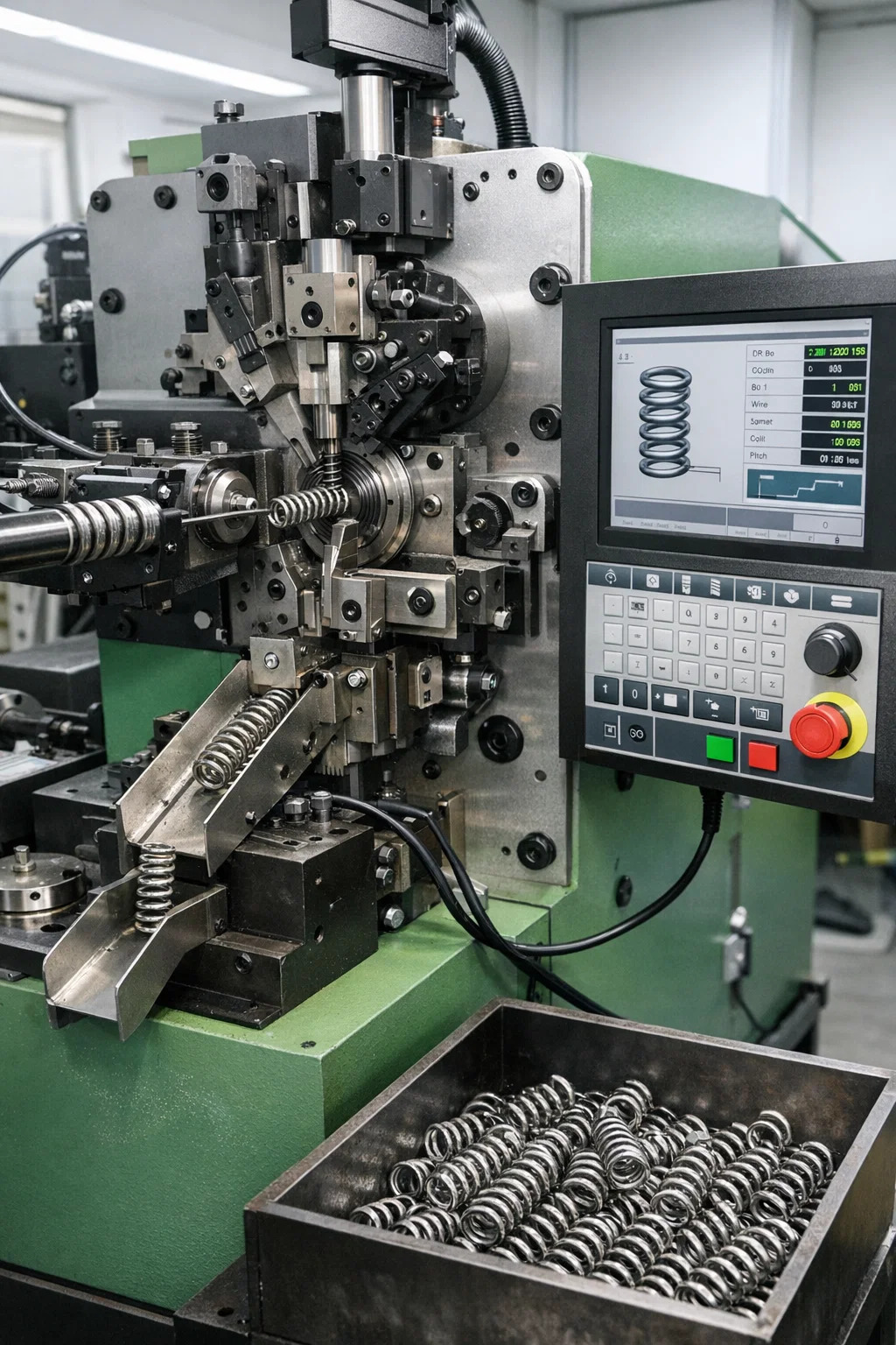 Pružinové ohýbacie stroje čelia obzvlášť akútnej verzii tohto problému. Celý produkt je definovaný jeho elastickým zotavením – napríklad tlačná pružina musí predvídateľne ukladať a uvoľňovať energiu, takže proces navíjania musí presne počítať so spätným pružením, aby sa dosiahla cieľová voľná dĺžka a rýchlosť pružiny. Pružina, ktorá pruží viac, ako je naprogramovaná, bude príliš dlhá; ten, ktorý menej pruží, bude príliš krátky a oba neprejdú záťažovým testom.